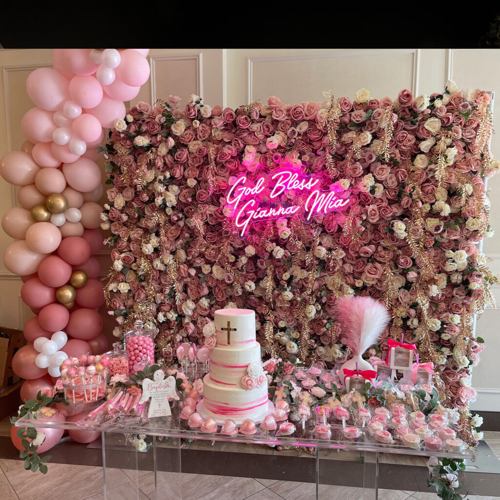 Make a bold statement at your event with our premium neon signs, perfect for adding a unique and personalized touch to your flower wall rental.